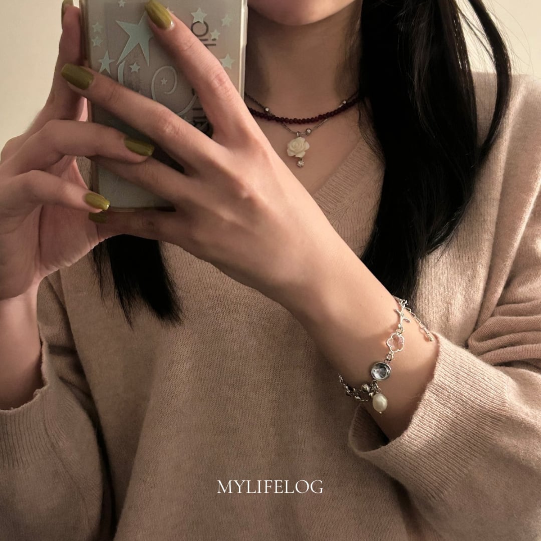 pink flower connector bracelet